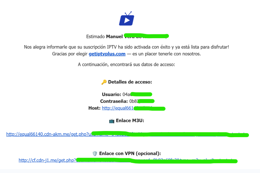 Primero, cuando pagues recibirás los detalles de tu suscripción así: