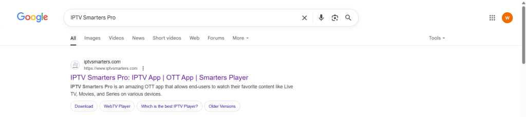 Paso 1: Vaya al motor de búsqueda y escriba “IPTV Smarters Pro”